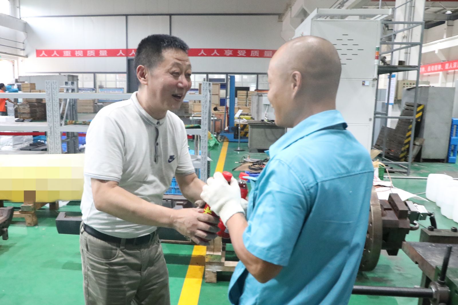在102車間和前衛(wèi)表業(yè)金屬制品和塑壓成型車間,廖軍每到一處,為堅(jiān)守崗位的職工送去清涼飲品,并詳細(xì)詢問和了解職工的生產(chǎn)、生活情況,叮囑大家要時(shí)刻牢記把安全生產(chǎn)放在第一位,做好防暑降溫工作。慰問結(jié)束后,廖軍還觀看了公司產(chǎn)品展示廳。
