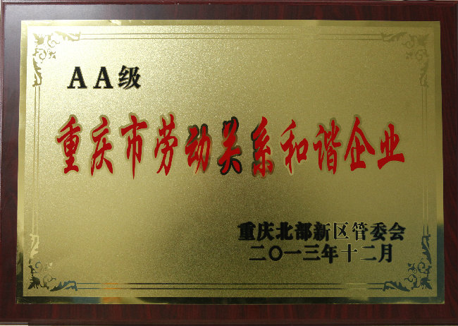 2013AA級重慶市勞動關系和諧企業(yè)